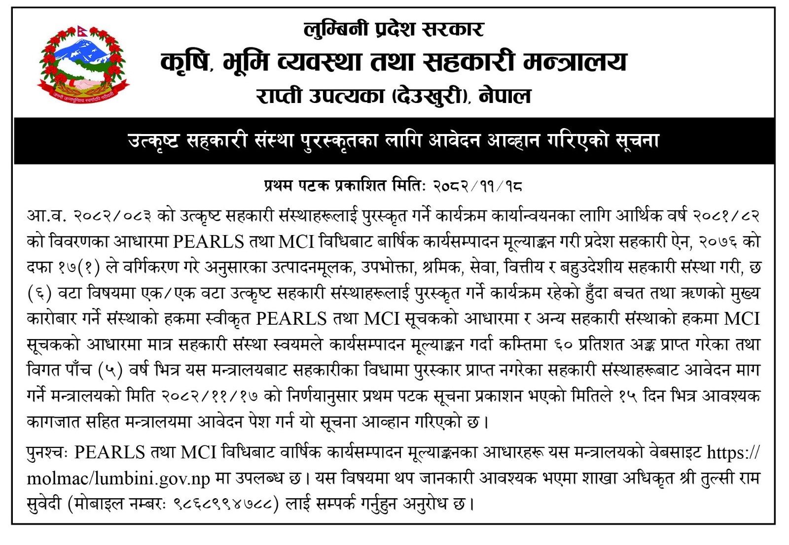 भूमिको वैज्ञानिक व्यवस्थापन एवं सामाजिक न्यायमा आधारित भू-उपयोगका माध्यमबाट सहकारी क्षेत्रको परिचालन गरी प्रदेशको कृषि एव पशुपन्छीजन्य उत्पादनको क्षेत्रमा आत्मनिर्भरता हासिल गरी यस क्षेत्रको ... थप हेर्नुहोस्